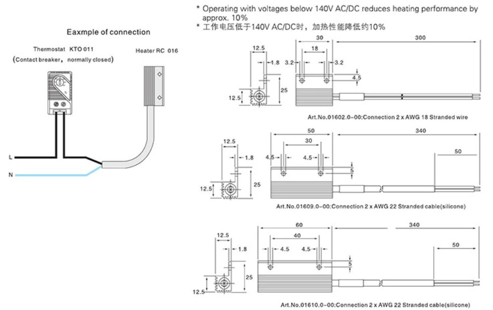 Nostrum parvum semiconductorem calefacientis RC016 PTC Distributio scrinium late in apparatu electrica adhibetur. Proprie convenit scriniis inclusis quae dehumidificatione et constanti temperamento temperantiae indigent. Communi applicatione missionum includit: